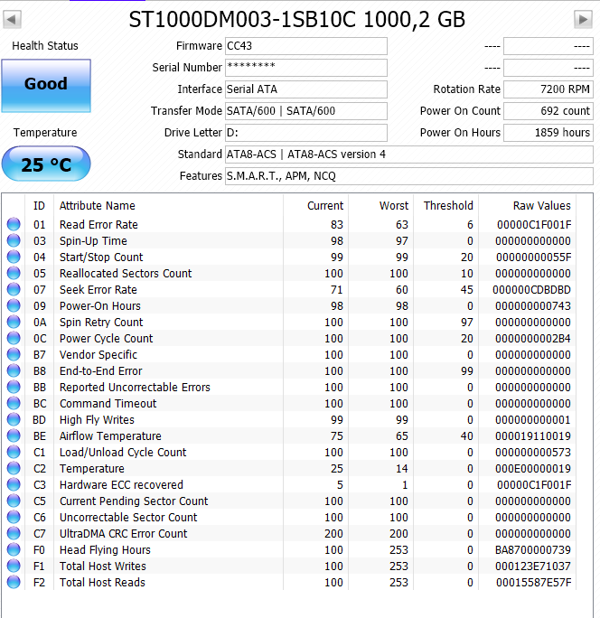 meine Festplatte (Seagate ST1000DM003-1SB10C) macht in letzter Zeit nur noch Probleme.