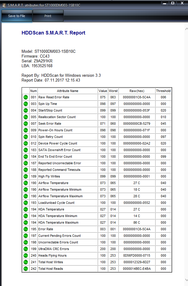 Die Lese- und Schreibrate kommt nicht mehr über 256kb/s. Außerdem erhöht sich die Antwortzeit auf über 500ms, was gar nicht geht. Die Festplatte lässt sich also im normalen Betrieb nicht mehr normal benutzen.