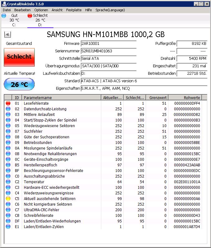 geht wenn man mal zocken will habe ich mir Crystal Disk Info besorgt