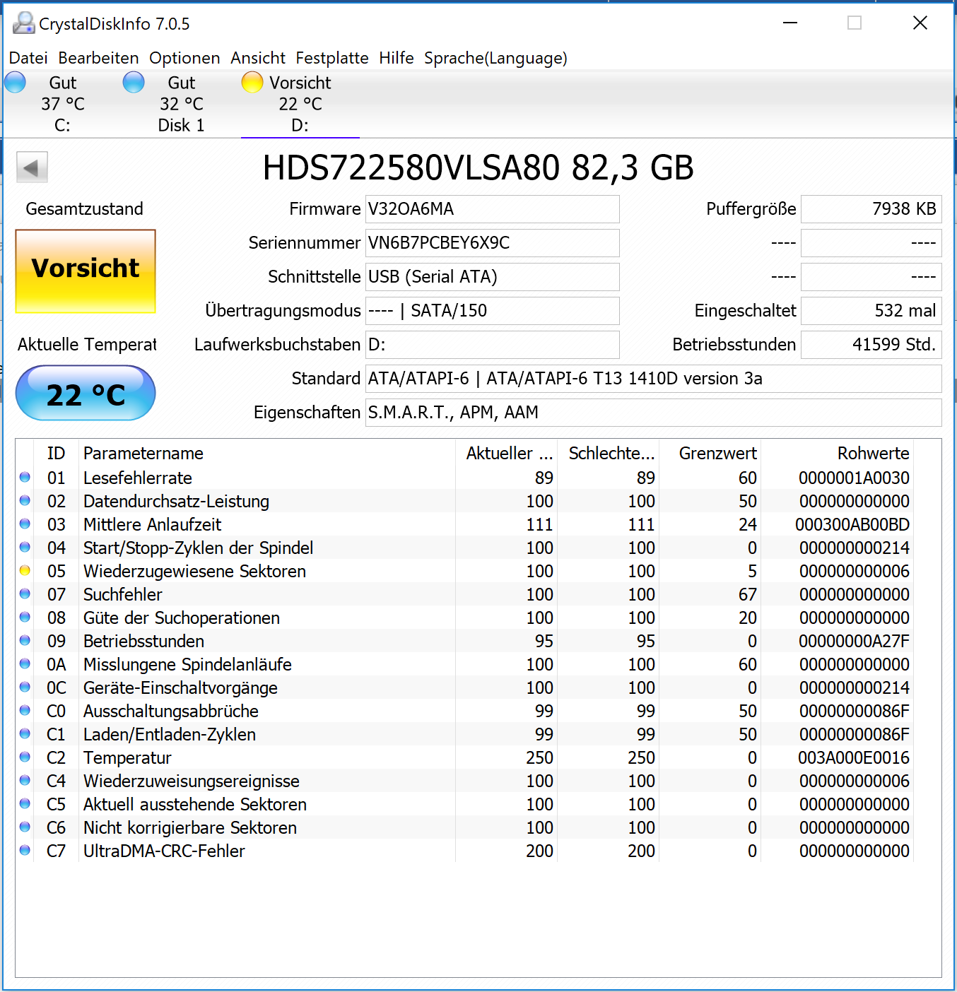 Die HDD hat nun auch schon über 10 Jahre auf dem Buckel.