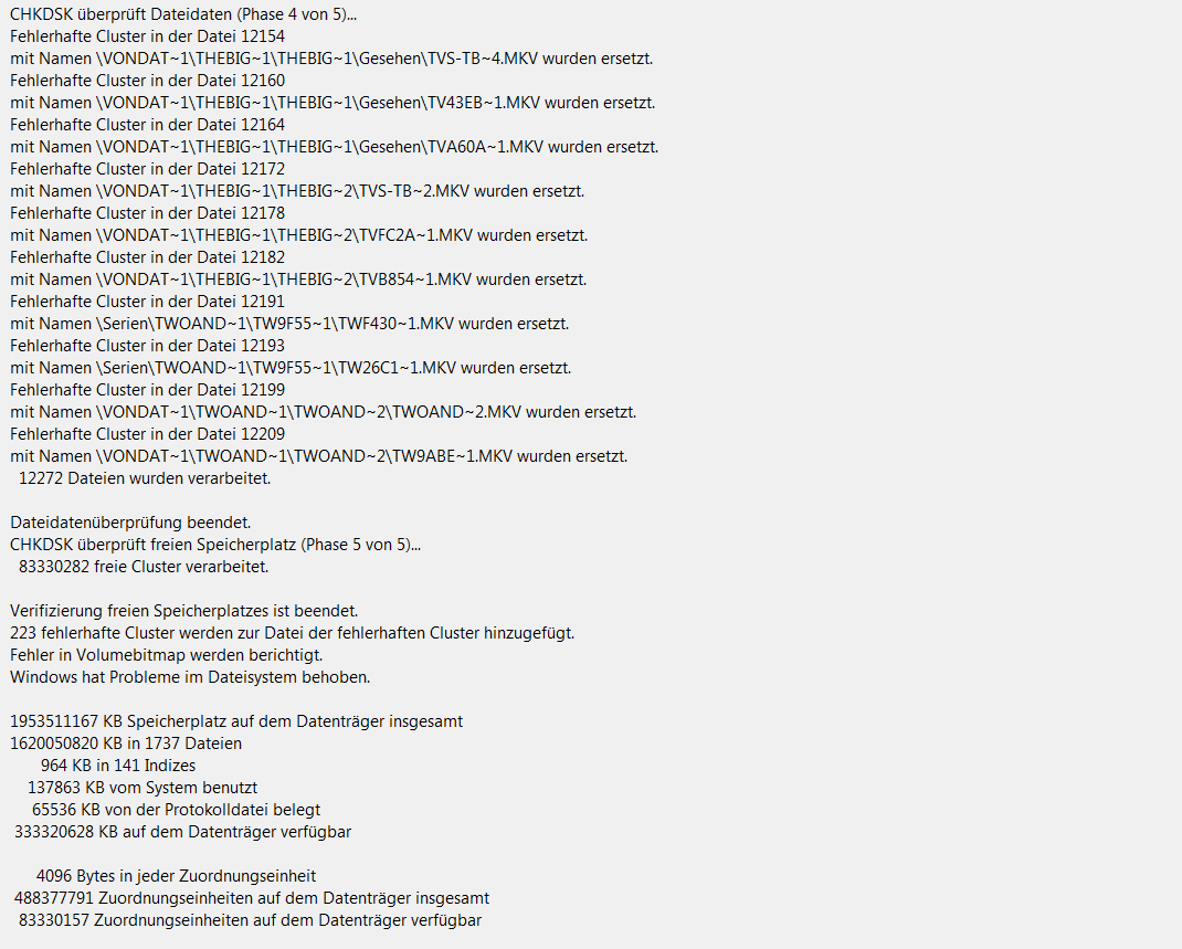 Seitdem ich die Datenträgerprüfung mit Korrektur von Dateisystemfehlern und Herstellung von fehlerhaften Sektoren durchführen ließ, sind keine CRC-Fehler mehr auftreten und die Geschwindigkeit ist wieder normal