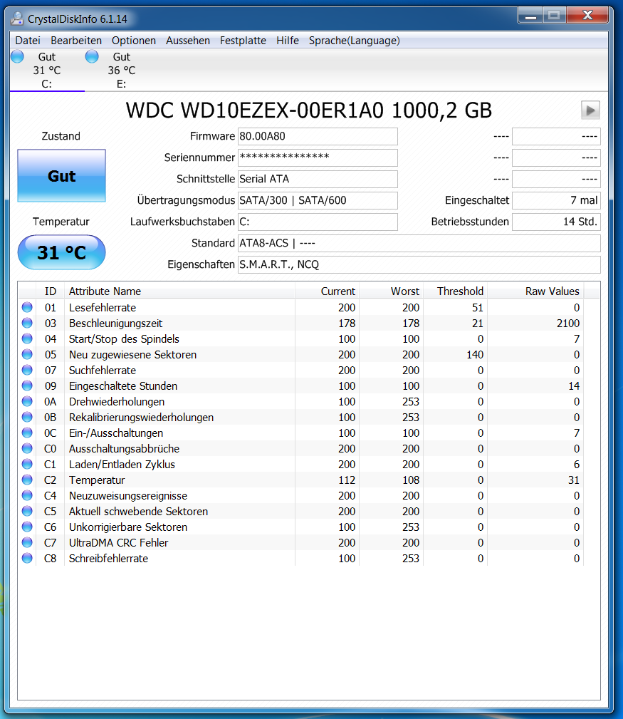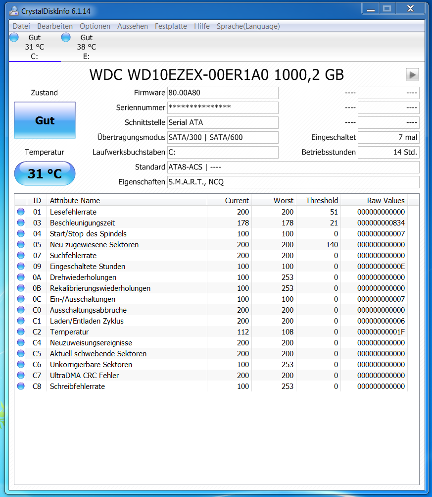 C7 200 200 __0 000000000000 UltraDMA CRC Fehler