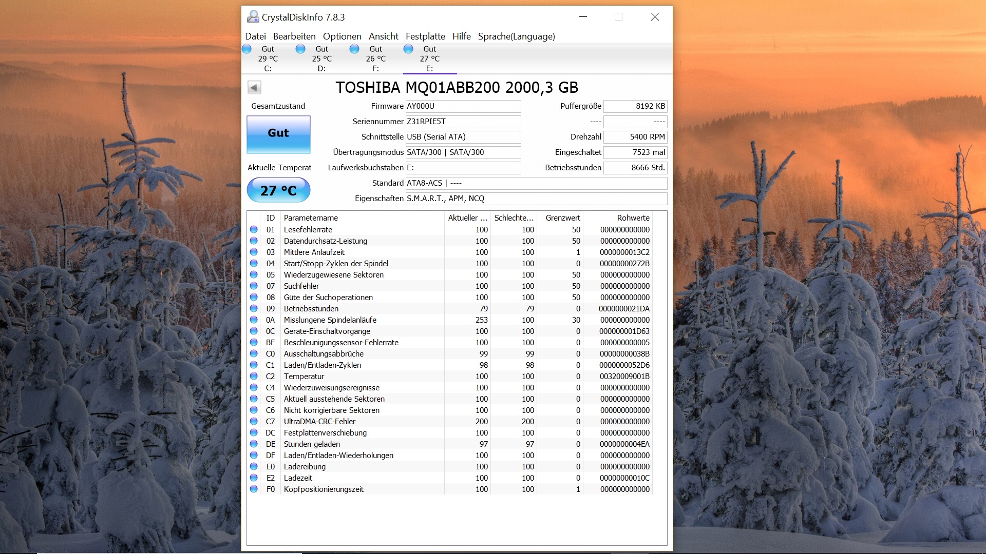 Seatools Tests hab ich gemacht (außer Langzeit), chkdsk soweit möglich. HD Tune Benchmarks und Error Scans. Alles okay anscheinend. Hier CrystalDiskInfo: