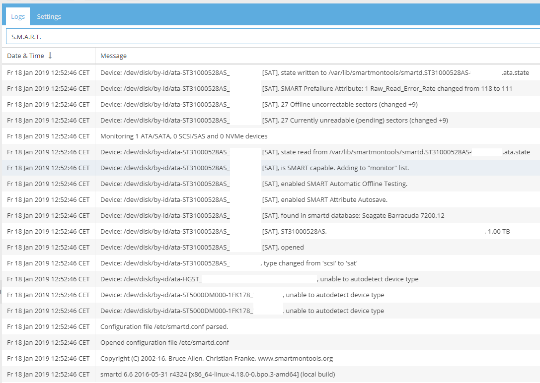 Die hat 8 schwebende Sektoren, kann auch sein das es nur einer ist, denn bei einigen Platten wie die Deine physikalisch 4k Sektoren haben, wird dort die Anzahl der logischen Sektoren angezeigt, denn diese Platte emuliert ja 8 Sektoren mit logischen 512 Byte großen Sektoren pro physikalischem Sektor. Dies kann wie schon geschrieben auch harmlose Ursachen haben, muss also kein Hinweis auf einen Schaden der Platte sein und bei so vielen unerwarteten Spannungsabfälle würde ich das auch vermuten und die können natürlich auch zu einem korrupten Filesystem führen. Du solltest mal schauen wieso es so viele unerwartete Spannungsabfälle gibt. Oder schaltest Du das RAID immer einfach so aus?