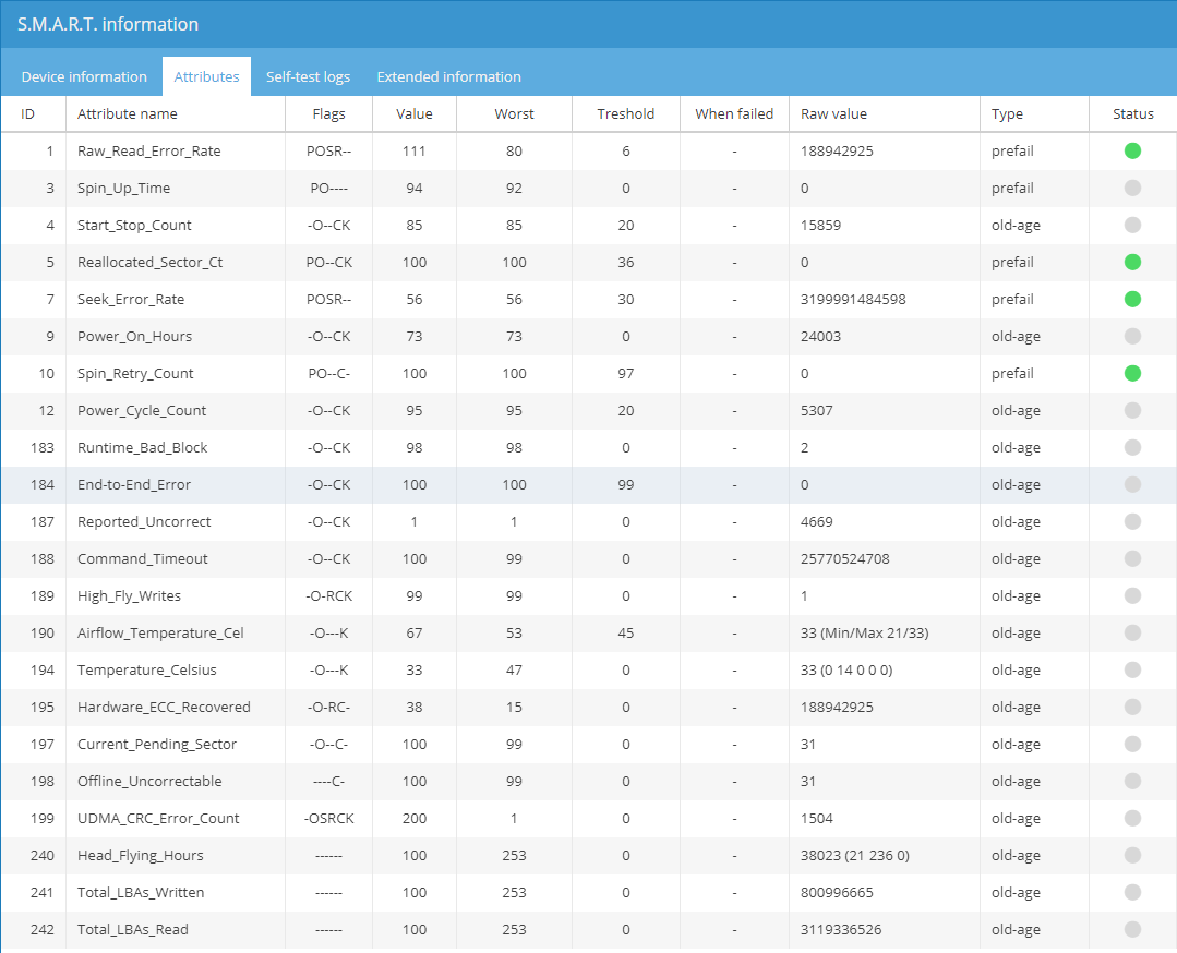 SMART Werte der Platte nach Formatierung auf NTFS in Windows: