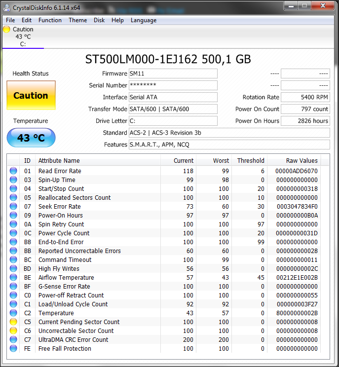 Tyraell, was Heen meint ist: Poste bitte mal den Screen von CrystalDiskInfo (die Portable Edition reicht und ist frei von Werbung), ziehe aber bitte das Fenster soweit auf, dass alle Attribute und auch die Rohwerte vollständig sichtbar sind. Dann würde ich mit HD Tune 2.55 vorsichtig sein, warum steht auch im ersten Post, ebenso wie man einen Screenshot erstellt und bitte poste nur den Screen von CDI, nicht den ganzen Desktop!
