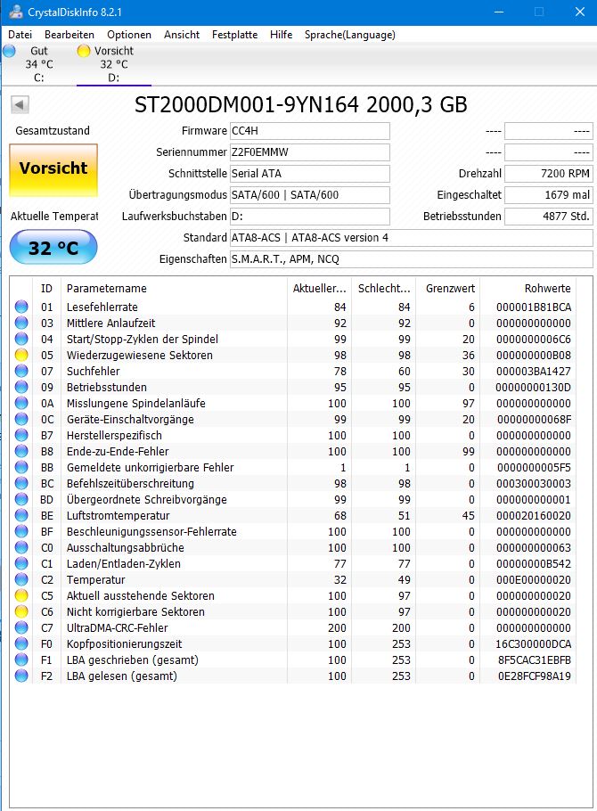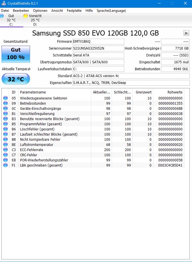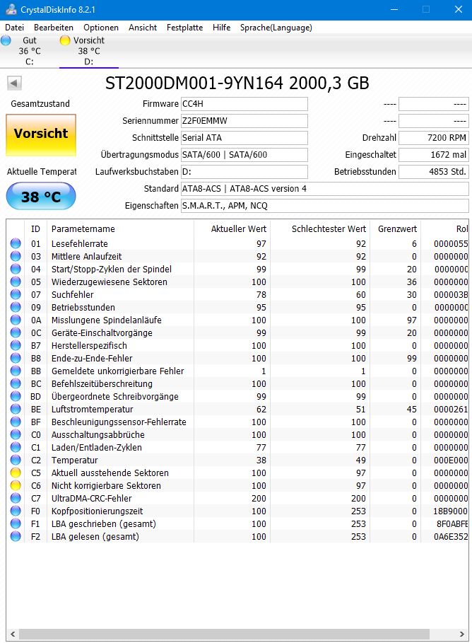 - Nun habe ich mal Crystaldiscinfo drüberlaufen lassen und es zeigt mir folgendes an (s. Anhang)