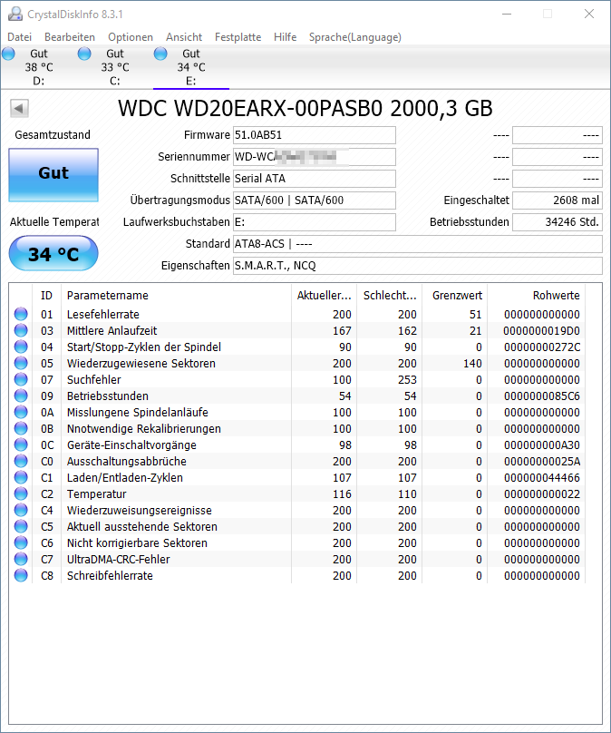 Al99 schrieb:Es wurden zuerst 8 schwebende Sektoren gemeldet, dann 8 wiederzugewiesene Sektoren. Heute sind es 16 wiederzugewiesene Sektoren geworden.