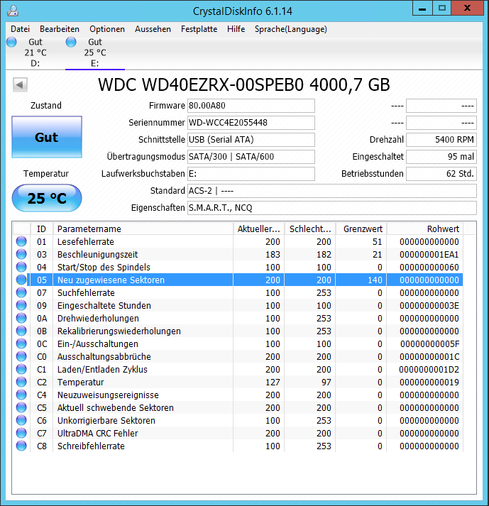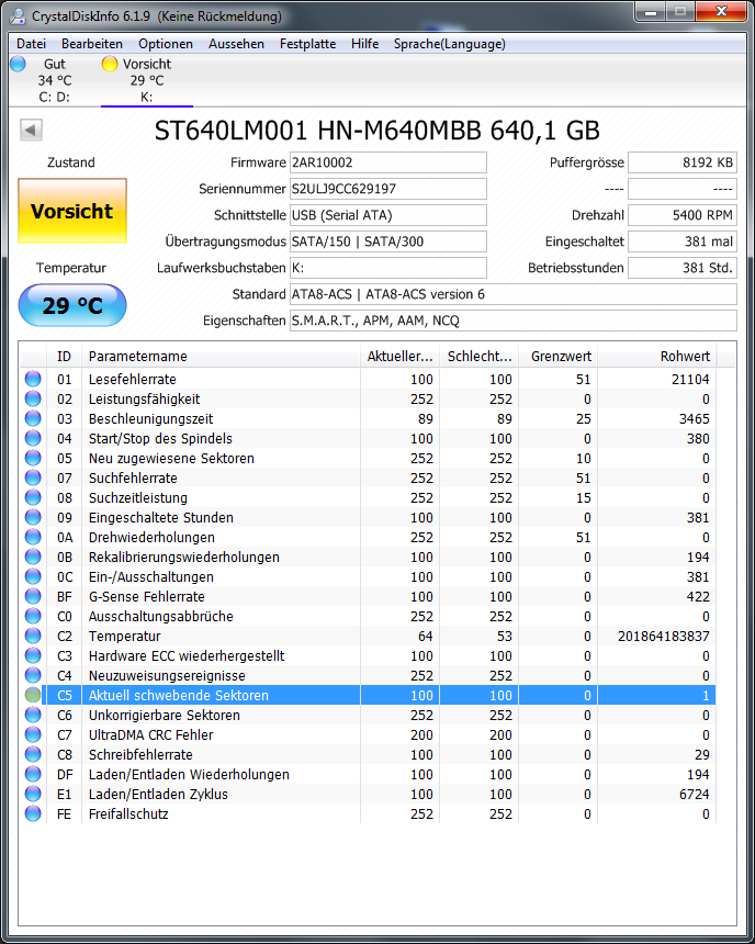 Was meint ihr denn hierzu? Ausgebaut aus einem Sony Vaio Notebook von 2013, kein Boot, kein Starten von Windows-8-DVD, kein Recovery mittels "Vaio Assist" mehr möglich. Ein anderer Rechner erkennt die Platte gar nicht korrekt, Verwaltung und damit die Datenträgerverwaltung lässt sich dann nicht ausrufen, CDI startet erst beim Abziehen der Platte, erkennt aber zumindest die SMART-Werte. Ein schwebender Sektor find ich gar nicht so schlimm, aber die G-Sense Werte kann ich nicht genau beurteilen. Platte gibt auch keine abnormalen Geräusche von sich.