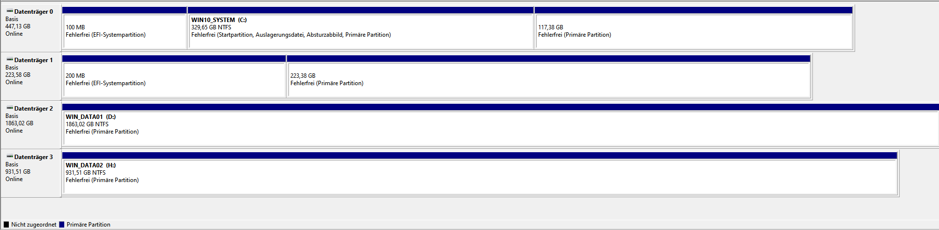 Bittesehr. Datenträger 0 ist die System NVMe, 1 ist eine Sata SSD mit einem anderen OS, 2 und 3 sind HDDs für Daten. Das betroffene Laufwerk ist 2 (D)Holt schrieb:Es wäre aber gut mal die ganze Datenträgerverwaltung zu sehen