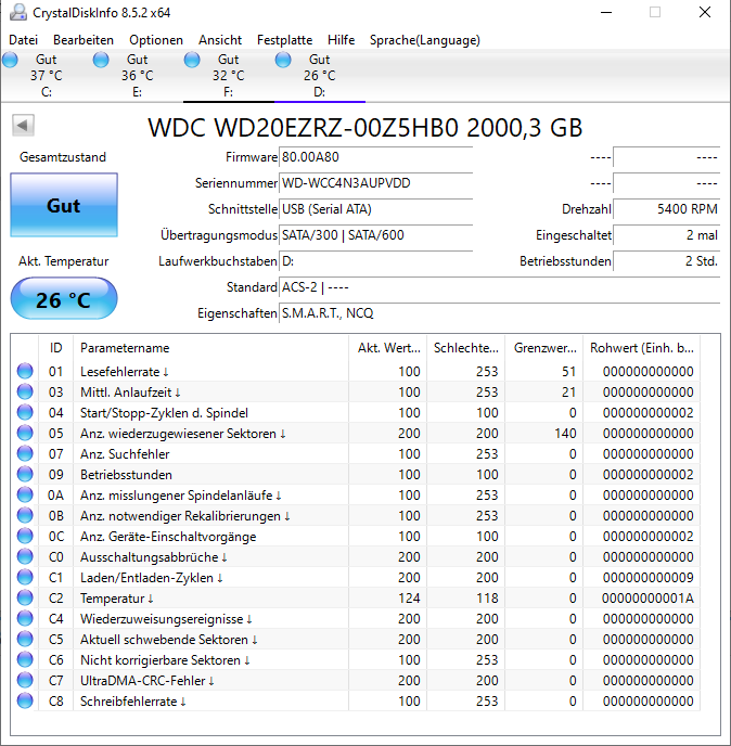 Die gute alte Funktion "Hardware sicher entfernen", die eben nicht alleine durch die Einstellung des Schreibcaches überflüssig wird, auch wenn manche dies so hinstellen/schreiben. Welche HDD hast Du denn fürs Backup gekauft? Man sollte nämlich beachten, dass die das Attribut unterschiedlich behandeln, wenn die Rohwerte der Attribute C0 und C1 identisch sind, dann bedeutet C0 nicht das Gleich wie bei anderen HDDs und ist kein Zähler von unerwarteten Spannungsabfällen.Paddy0293 schrieb:ob es irgendetwas gibt, was die HDD in Park Position bringt oder darauf vorbereitet das ich sie gleich ausschalte (externe Spannungsversorgung)