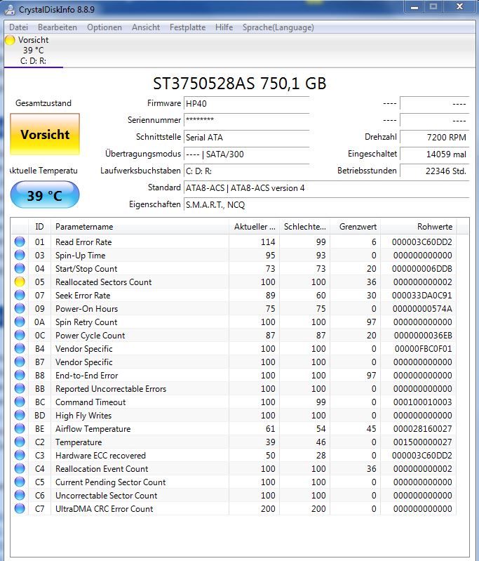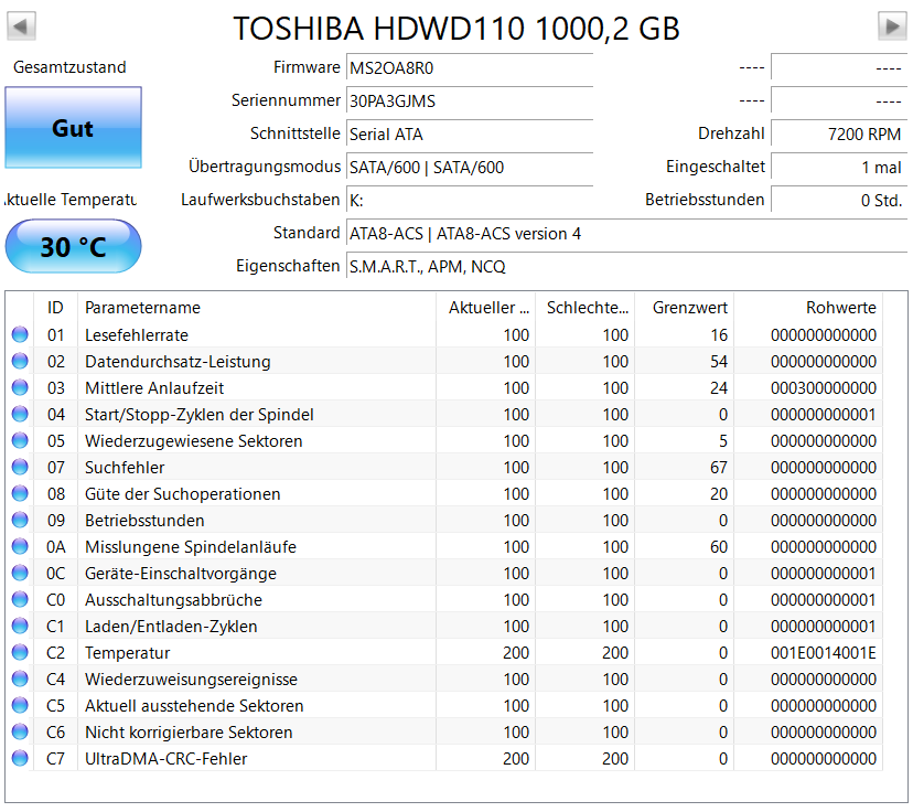 Die Festplatte dürfte demnach erst die Hälfte ihrer prognostizierten Lebensdauer erreicht haben, wären keine Fehler aufgetreten.