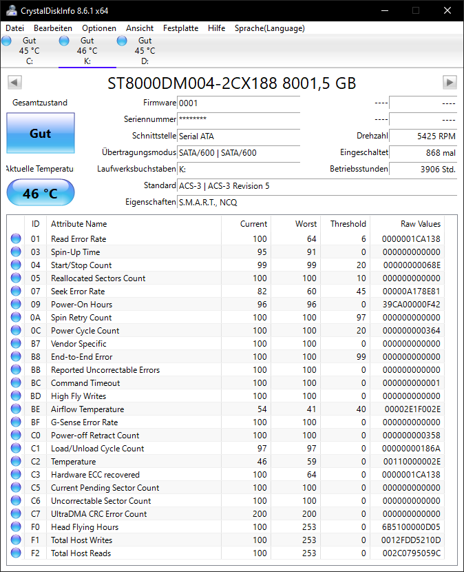 Falls jemand so nett ist & mal rüber schauen könnte wie es mit meinen Platten ausschaut (vor allem bei der 8TB Seagate) wär ich sehr dankbar..