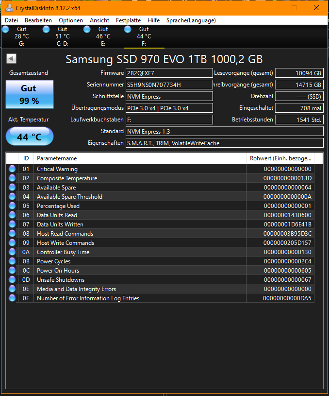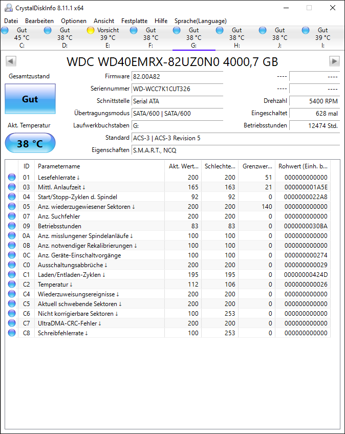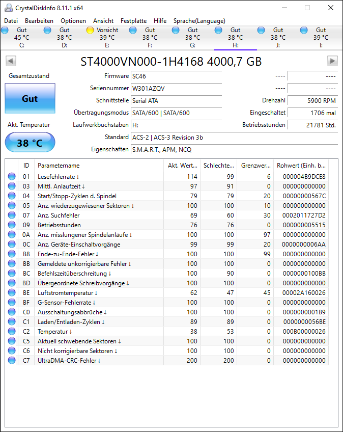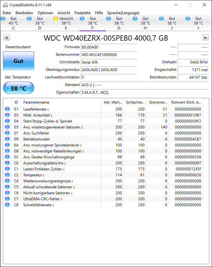Ansonsten gilt eh immer: aktuelle Datensicherung hält den Datenretter fern, da können die übrigen HDDs, eventuell außer der F mit 44.167 h, weiter verwendet werden.