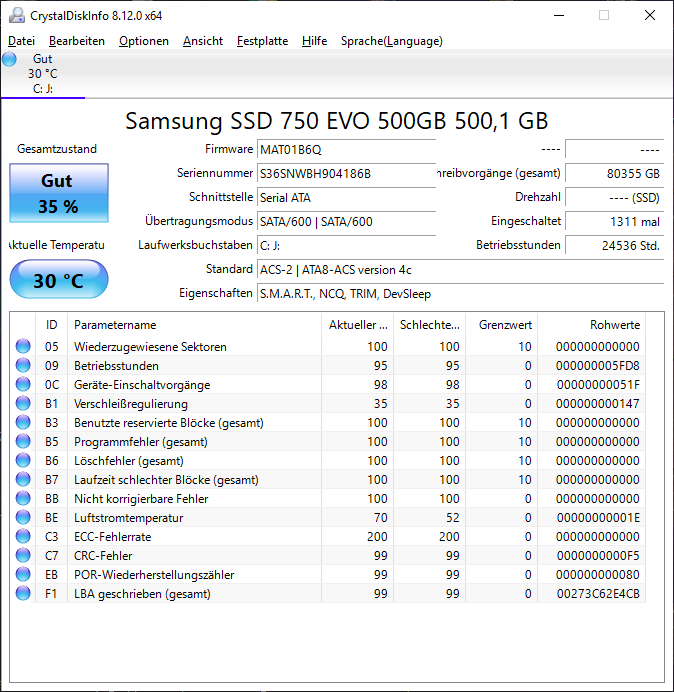 habe seit kurzem Probleme mit meiner Samsung 750 EVO 500GB.