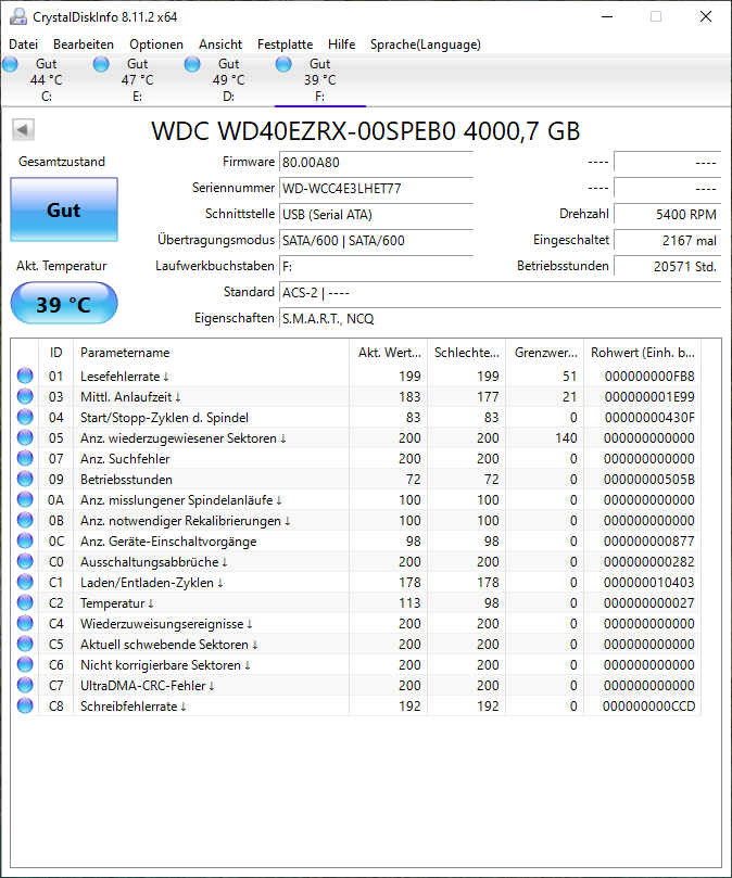 194 Temperature_Celsius 0x0002 139 139 000 Old_age Always - 43 (Min/Max 24/47)