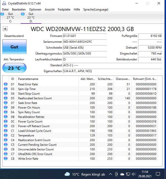 SATA Version is: SATA 3.2, 6.0 Gb/s (current: 6.0 Gb/s)