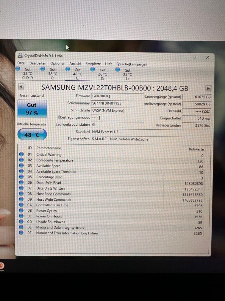 ich hatte leider enorme PC Probleme und würde nun die SSD in einem USB laufwerk getrennt auf Herz und Nieren testen.