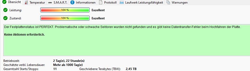 Und mit der neuen ST5000 soweit auch alles in Ordnung? Laut HDSentinel soll der Zustand angeblich "Perfekt" sein.