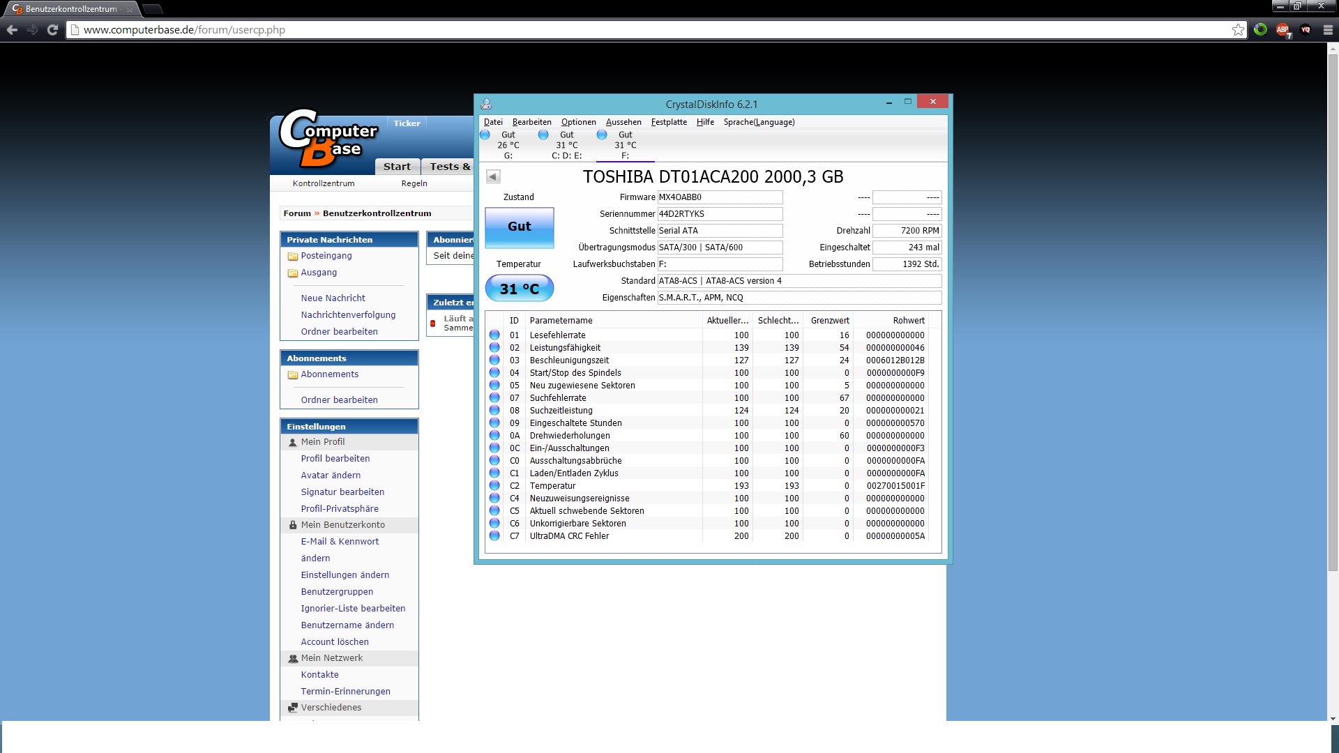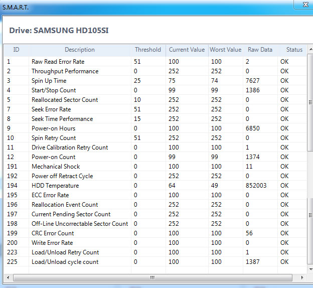 95 defekte Sektoren wurden durch Reservesektoren ersetzt (reallocated);