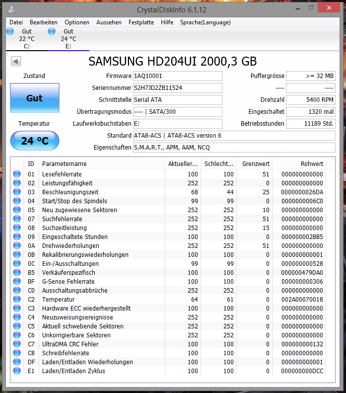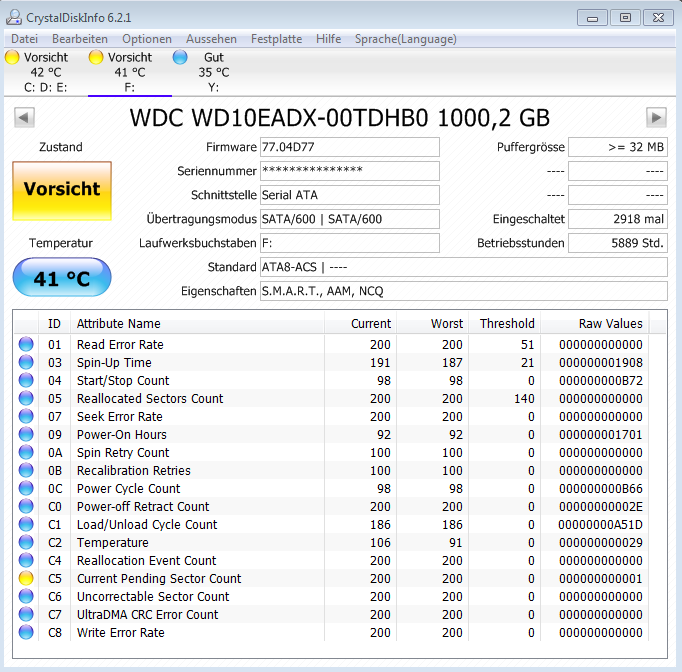 2 Sektoren konnten nicht gelesen werden (pending sectors), ob sie defekt sind und durch