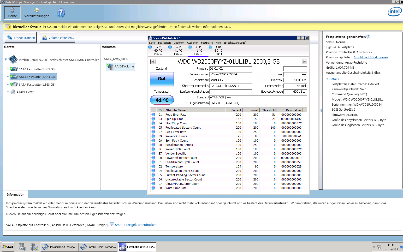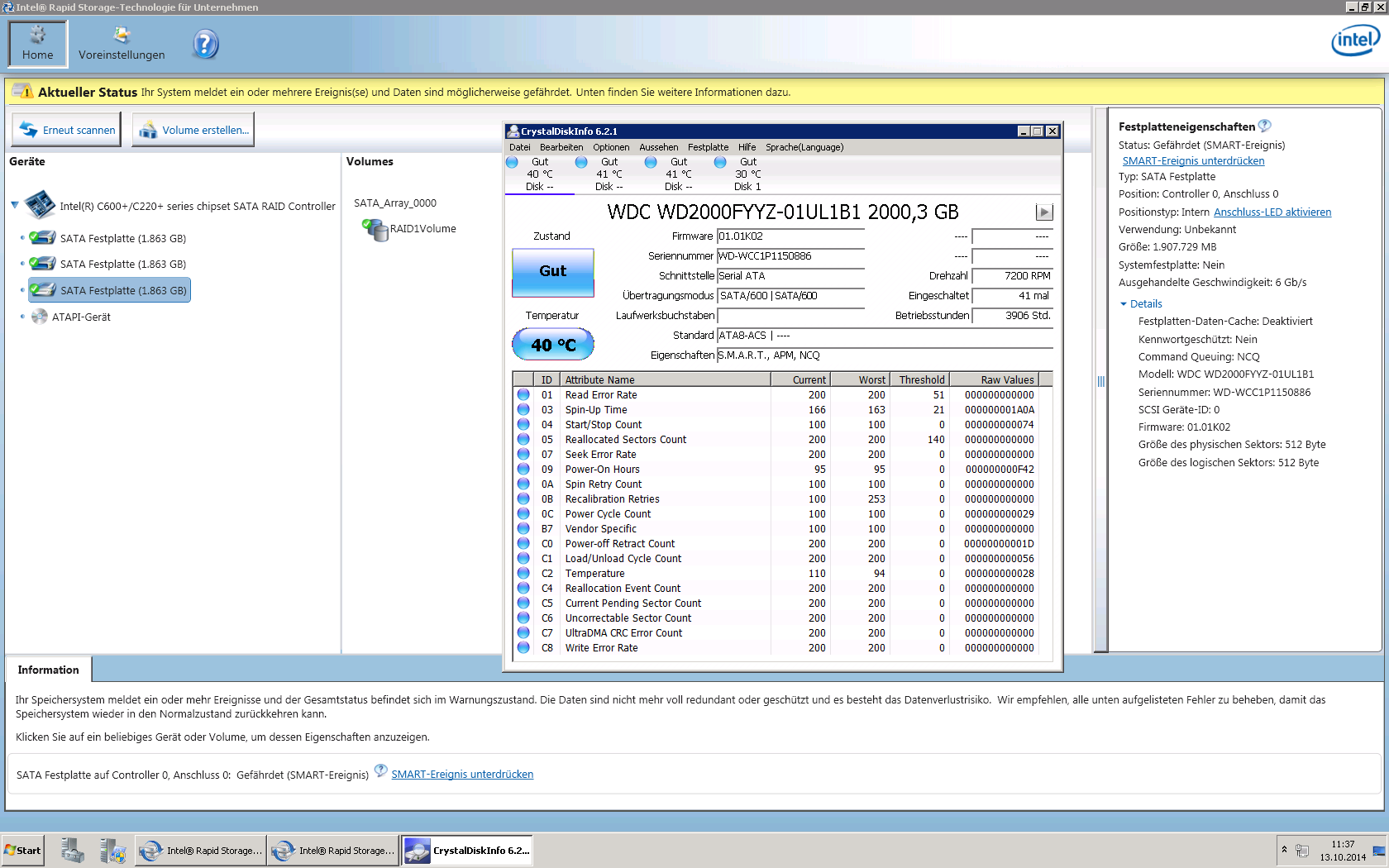 Die Lesefahlerrate ist also extrem hoch und der Aktuelle Wert liegt unter dem Threshhold, was alleine reichen sollte die Sache erst zu nehmen.