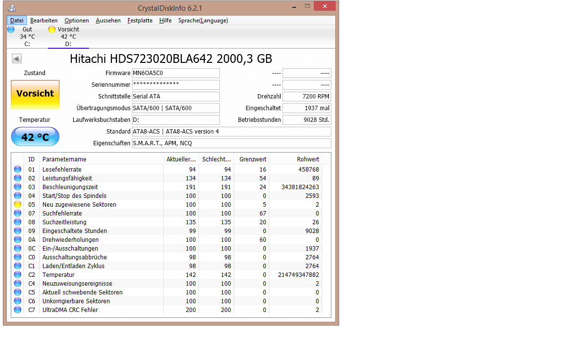 Auf meiner alten HDD waren noch die beiden Partitionen hinterlegt wie ich sie vor der Neuinstallation auf der SSD hatte. Ich hab jetzt die beiden Volumen gelöscht und ein einziges Volumen angelegt für die sekundär HDD. Das sieht dann so aus: