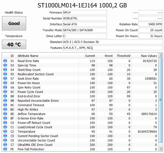 zusätzlich mittlerweile noch 2 x UltraDMA CRC Error bei meiner laptop-Festplatte. Ich denke, ich frag mal bei amazon an, ob sie mir die Platte tauschen...was soll das werden, wenn die nach 2 Wochen schon Fehler an allen Ecken und Enden produziert :-(