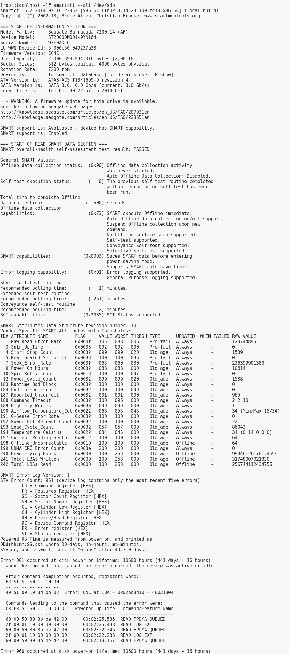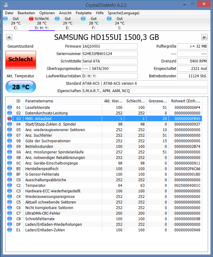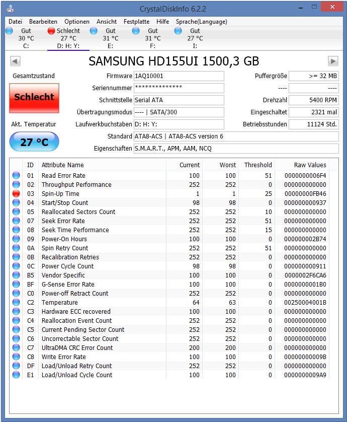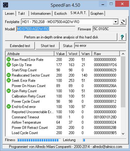 Ich ließ noch CCleaner drüber laufen und das war es. Als ich bei SpeedFan auf S.M.A.R.T klickte , wurde ich panisch.