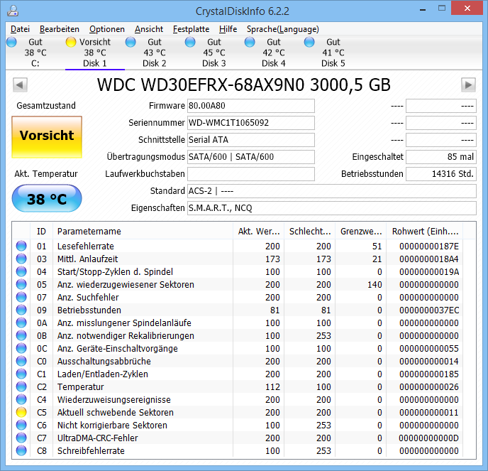 Auf Seite 11 sind dort die Fehlercodes beschrieben. Bei mir blinkt die Status LED orange, was entweder eine fehlende HDD oder eine mit Problemen bedeutet. Des Weiteren habe ich die Schritte in der Schnellanleitung verfolgt, da ich erstmal keine Ahnung hatte wie ich mein NAS überhaupt im Netz finde. Das NAS wird mir dann angezeigt, eine Verbindung ist aber nicht möglich, was ich bisher auf das Problem mit der Festplatte geschoben habe. Ja die Platte ist genullt und wirklich leer. Eine Partition habe ich nicht erstellt, da mir dies einfach nicht möglich ist, aufgrund fehlender Erreichbarkeit in Windows und Zugriffsfehler beim Lesen und Schreiben in PartedMagic. Es funktioniert wie gesagt ausschließlich das Beschreiben mit nullen über PartedMagic, sonst nichts mehr. Das Beschreiben von Zufallsdaten habe ich nicht ausprobiert.