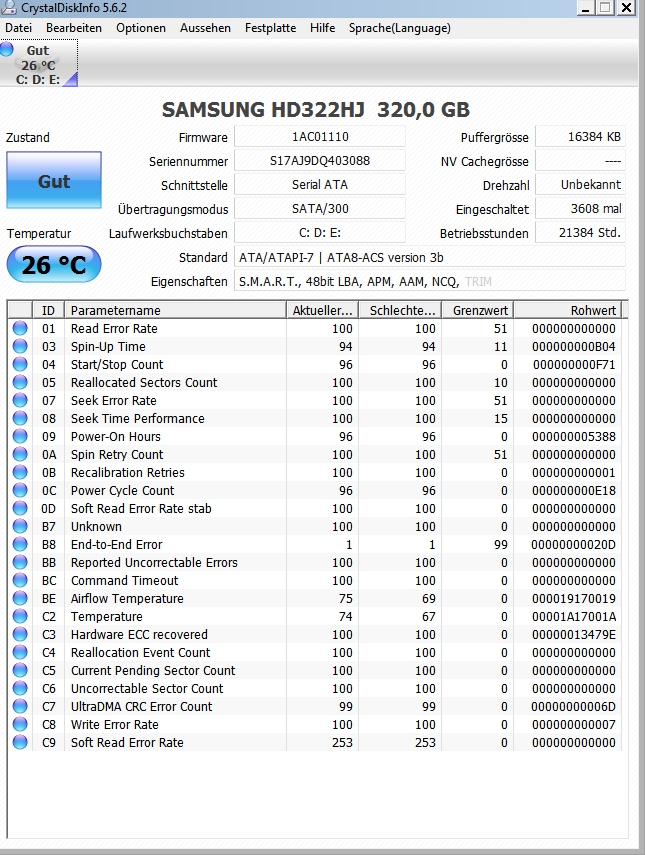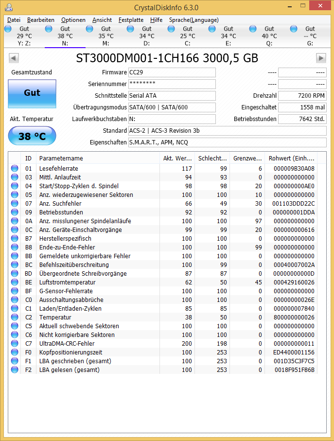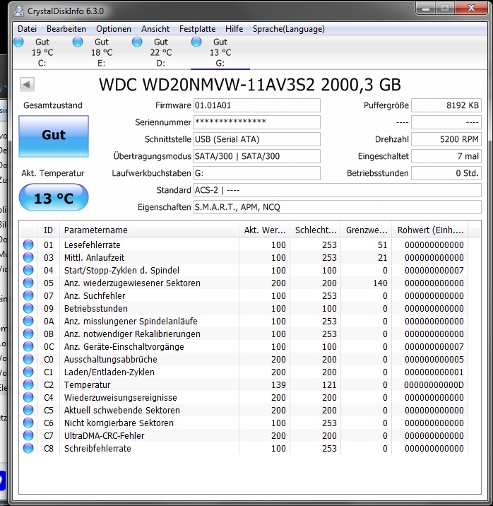 Im 24/7-Betrieb hätte die Festplatte bereits nach nicht einmal 3 Monaten die jetzt ausgewiesene Anzahl von neu zugewiesenen Sektoren erreicht. Die Annahme, dass daher bereits bei Vertragsabschluss ein Mangel vorlag, ist deshalb durchaus angebracht. Zu dem ist doch nicht von der Hand zu weisen, dass 4.560 neu zugewiesene Sektoren bei einer Festplatte mit 1.975 Betriebsstunden überdurchschnittlich und durch rein gar nichts zu rechtfertigen sind. Merkwürdig ist auch, dass keine schwebenden oder unkorrigierbaren Sektoren vorhanden sind, die eigentlich die Zuweisung von neuen Sektoren vorab "ankündigen". In diesem Fall sind ja anscheinend sofort neue Sektoren zugewiesen worden.