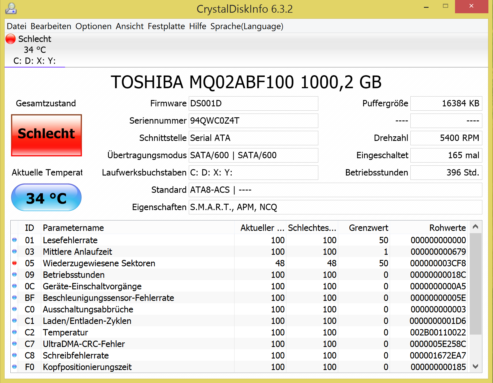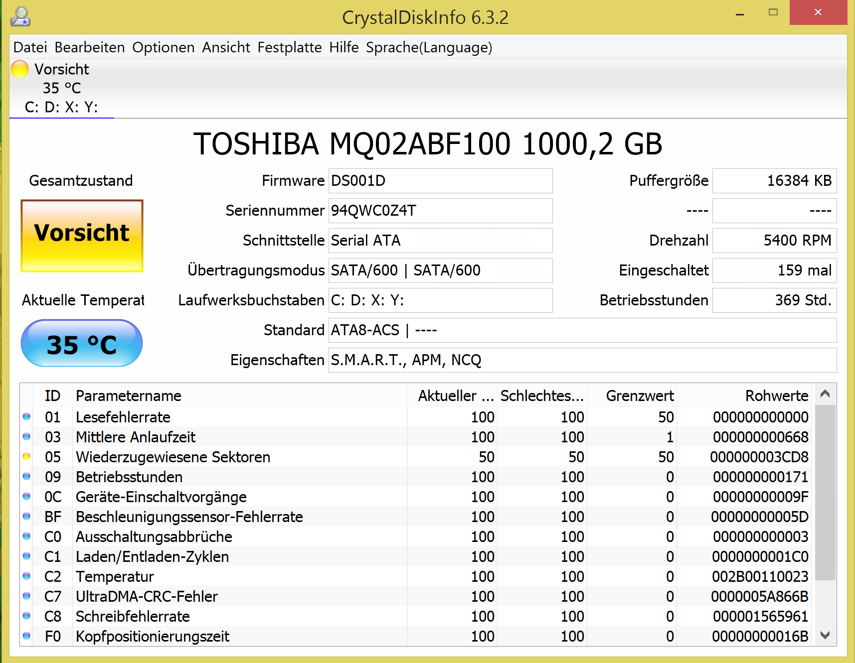 5 Reallocated_Sector_Ct 0x0033 100 100 036 Pre-fail Always - 1