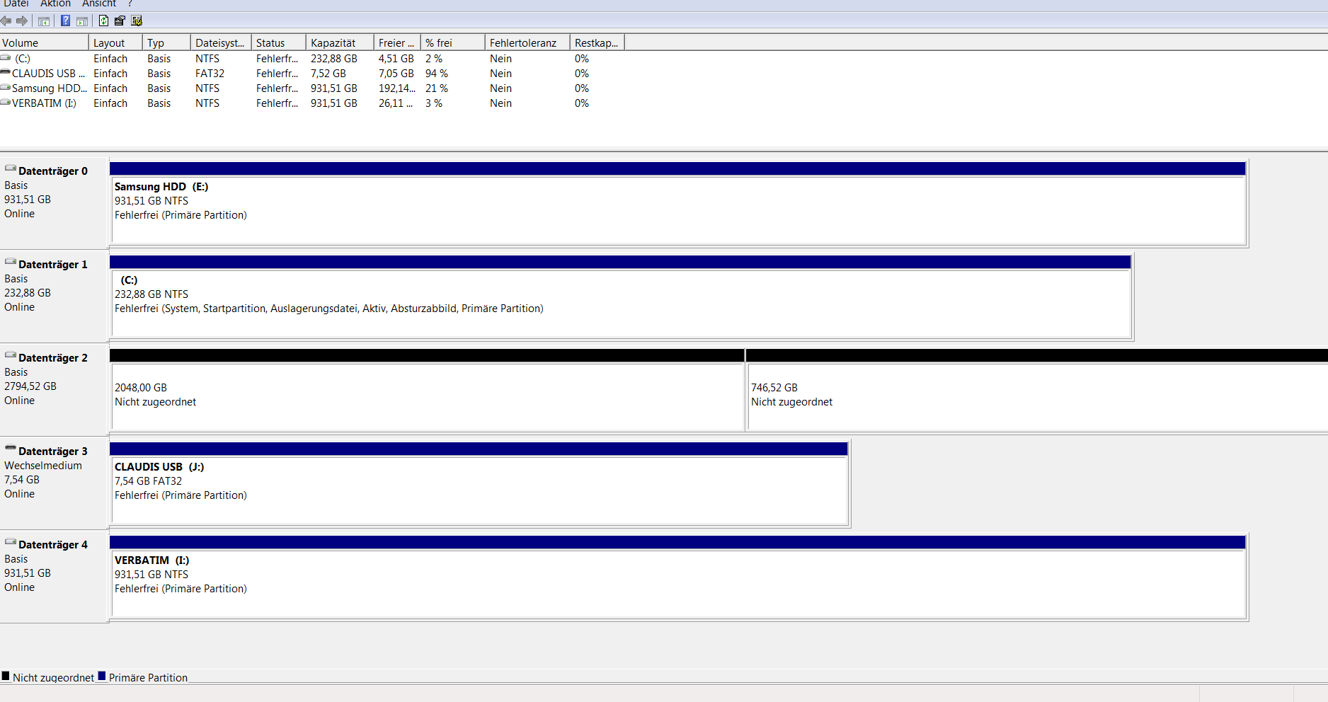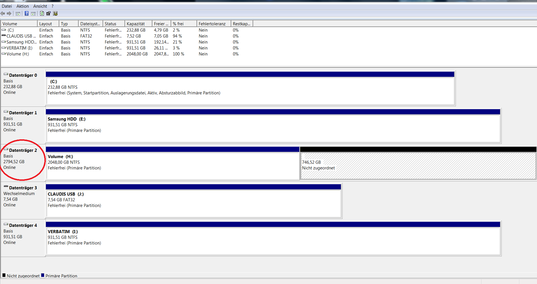die HDD ist in 2 partionen( 2048,00Gb & 746,52Gb), ich bekomme sie nicht mal zu einer partion..?
