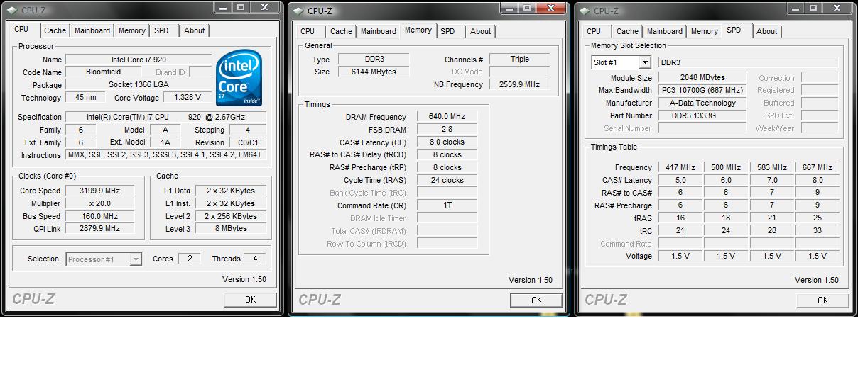 @man7.y: Wieso zeigt denn dein CPU-Z-Screenshot nur 2 aktive Kerne deinen i7-920 an? An der CPU-Z-Version scheint es aber nicht zu liegen, da andere User (inkl. mir selbst) mit der 1.50 vier Kerne (8 Threads) angezeigt bekommen. Finde ich irgendwie komisch.