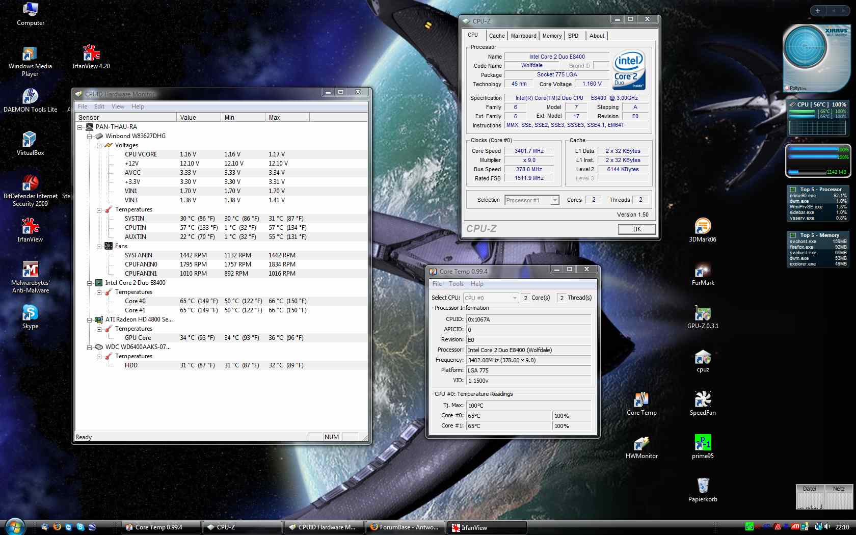 Mein Sys: CPU E8400 / MB Asus p5q pro / Ram DDR2-800