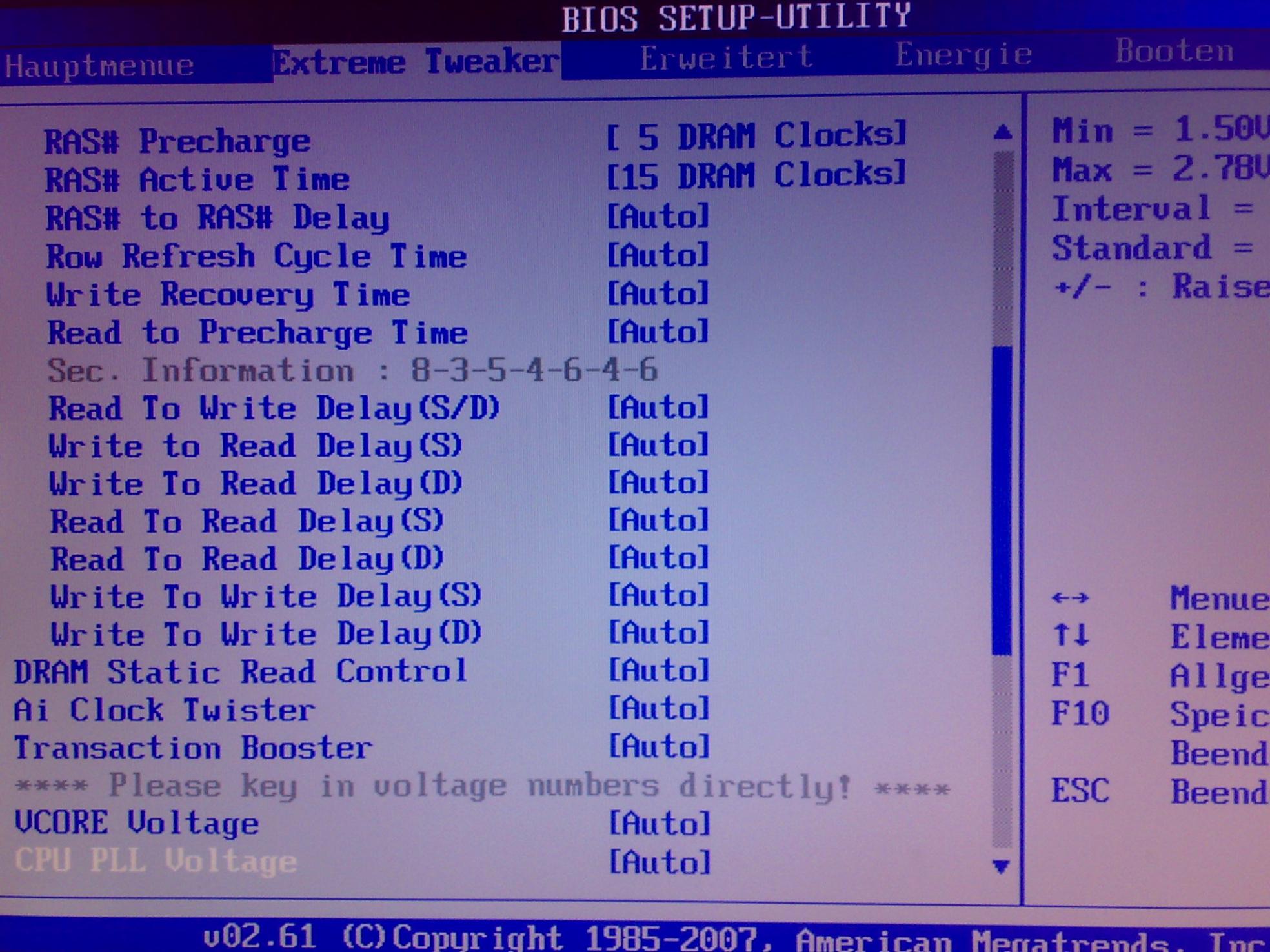 In dem Fall waren das 1,28 Volt (im Bios fest eingestellt) für 3,33 GHz und im Idle taktete sich der Prozessor auf 2,22 GHz und das Board senkte die Spannung auf 0,95 Volt.