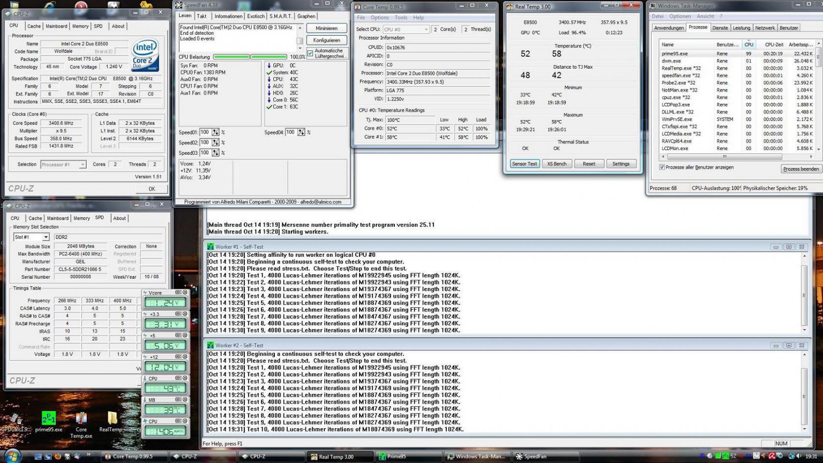Ich bin mit der Cpu Volt. dann bis auf 3.1V hoch, geholfen hat es leider nichts. Habe auch die restlichen Spannungen immer etwas erhöht (pll auf 1,6 - fsb tv auf 1,24 - NB V auf 1,24 usw.).