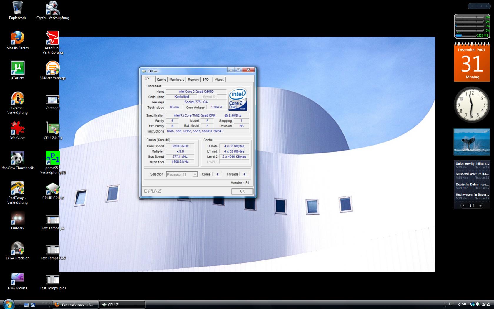 Immer hin 2D Idel CPU läuft bei 2,3Ghz (6x388) 3D Last CPU 3,4(5)Ghz (9x388,9) bei den Spannungen geht etwas noch!