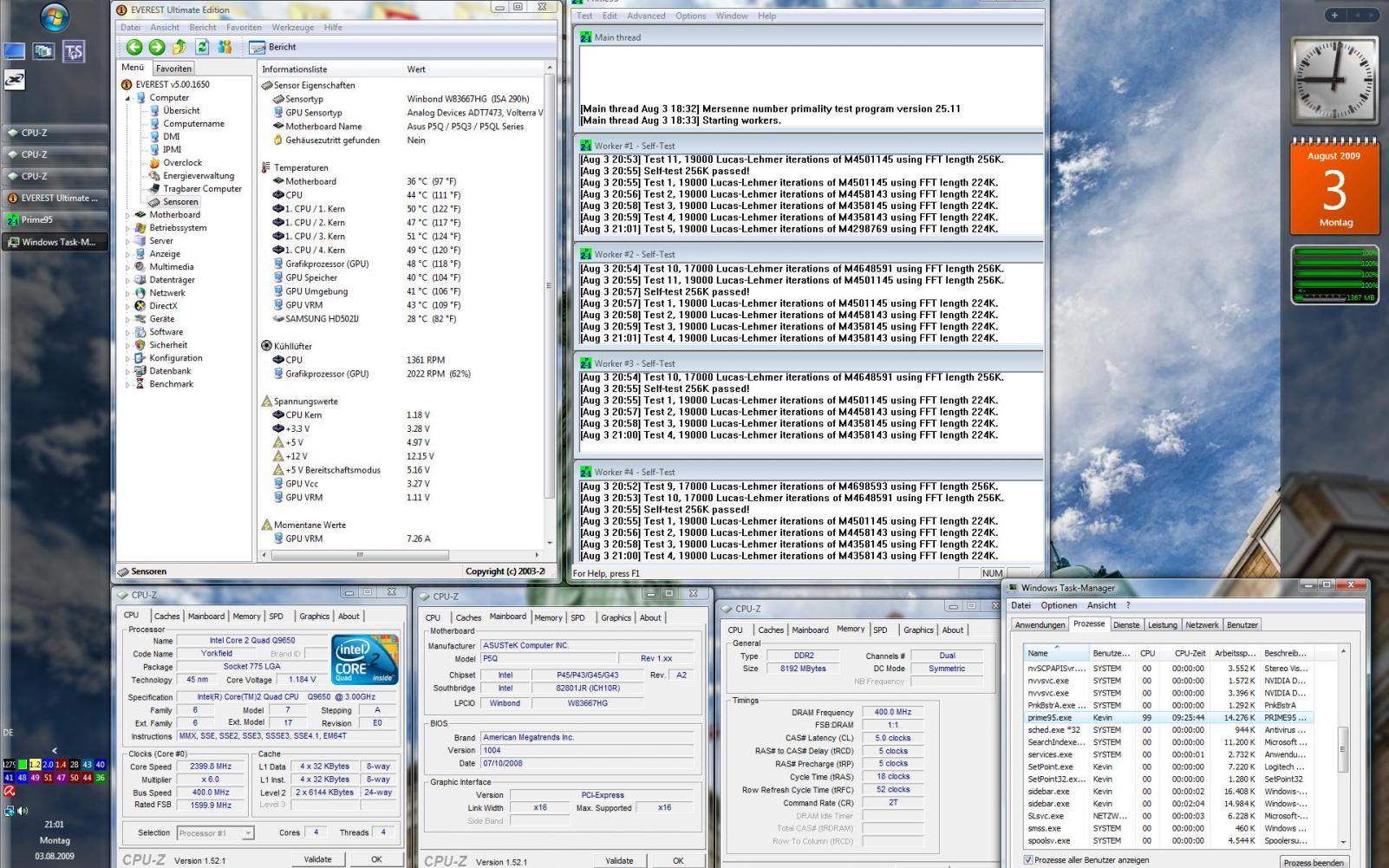 Zurück ins BIOS und Vcore auf 1,30625Volt gesetzt und Multi auf 9 => Windows wurde erfolgreich geladen und jetzt werde ich Prime Small starten.