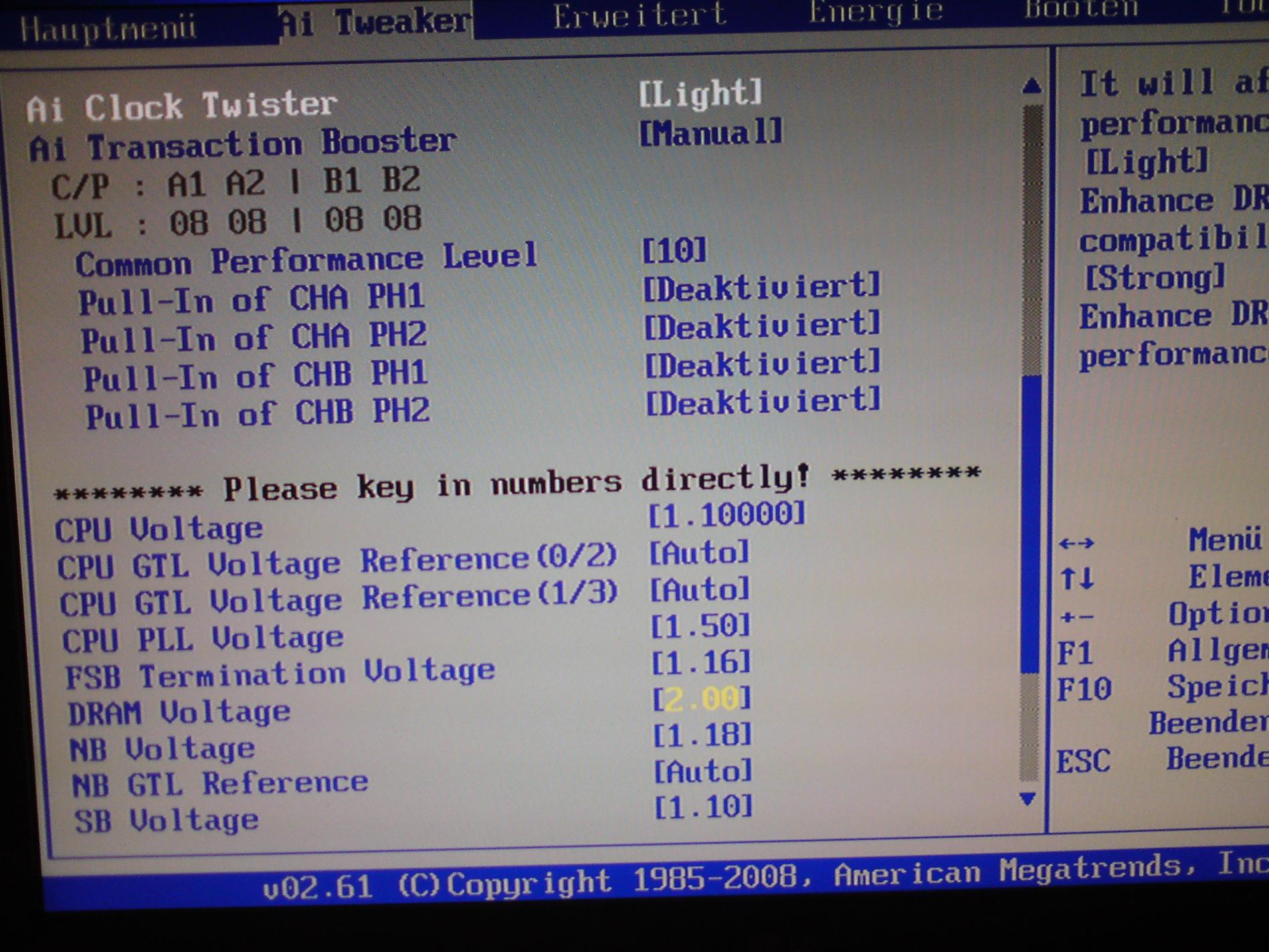 Wo ich noch nicht so genau weiß ist welche Spannungen ich bei FSB Termination Voltage und NB Voltage einstelle.