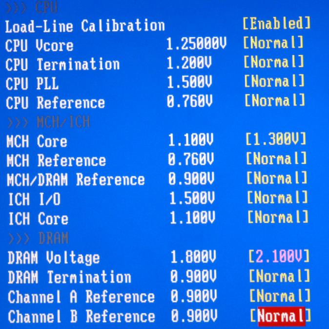 Alle Einstellungen wurden auf normal gesetzt und nur die genannten Änderungen vorgenommen. Load-Line Calibration an, soll auch so bleiben, wenn ich es deaktiviere ändert sich nichts nur die Spannung CPU Vcore ist geringer (logisch). Zum Testen wurde eine neu installiertes Win XP SP3 verwendet. Temperaturen sind alle im grünen Bereich.