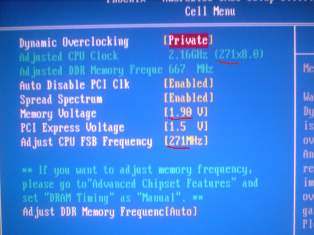 also bis auf das memory voltage auf 1.9 steht hat sich nix getan ich stell mal wieder alles ein so wie vorhin und schau ob sich jetzt auch 271 fsb verwirklichen... meld mich gleich nochmal