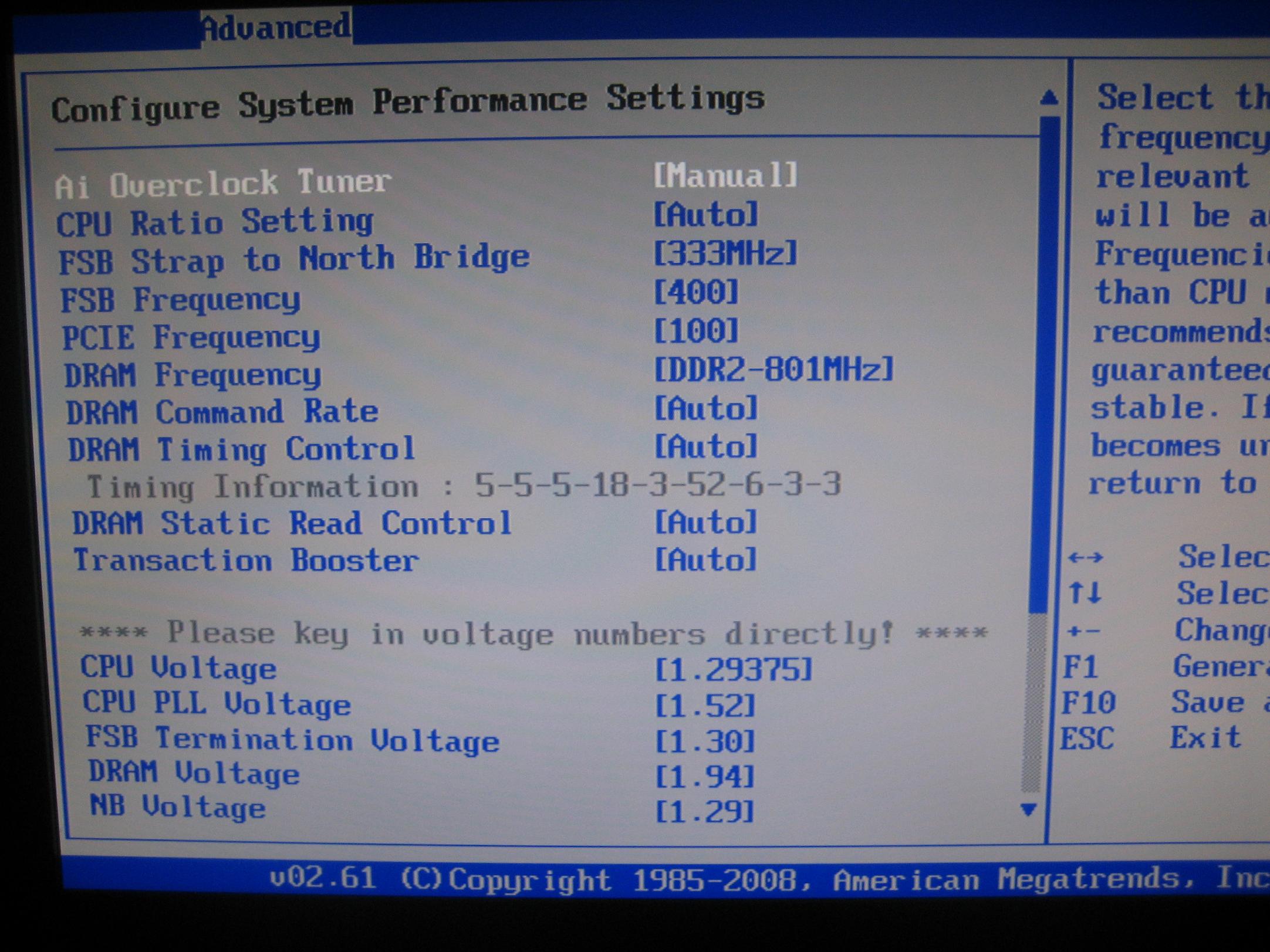Vielleicht hat jemand hier nen Tipp, oder kann mir sogar die genauen Einstellungen mitteilen? Ich habe soweit schon herausgefunden, das das Board bzw. der Prozzi mit einem FSB von 400 auf 3,8-4Ghz laufen soll. Aber mein Bekannter meint, der Rechner lief vorher auf etwa 3,6Ghz.