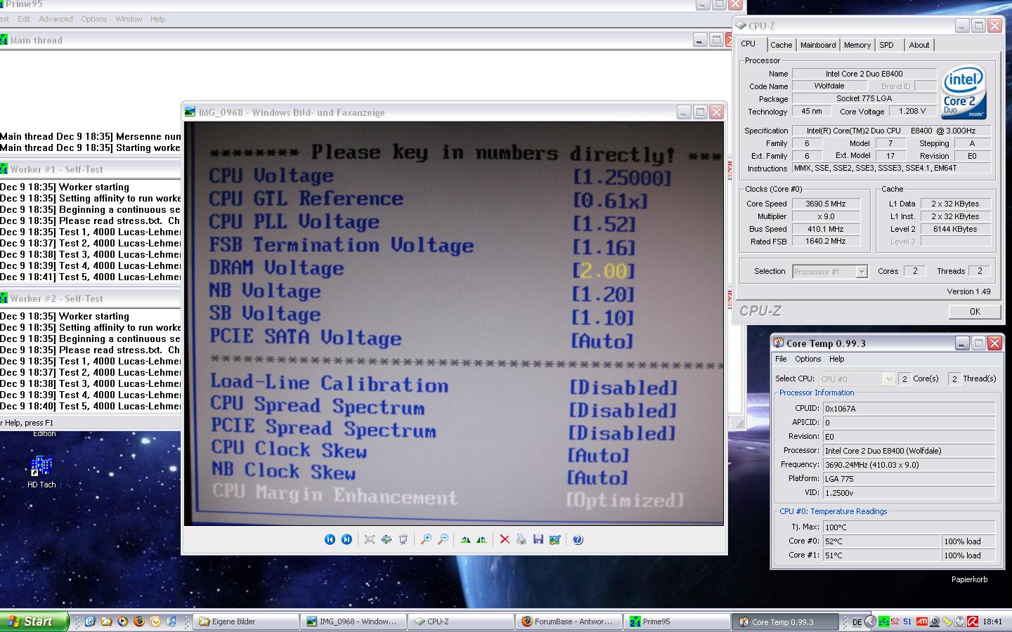 ich versuch das ganze jetz mal auf 3,3ghz zum laufen zu bringen ohne voltages zu ändern. mal sehen ob er sich aufhängt...