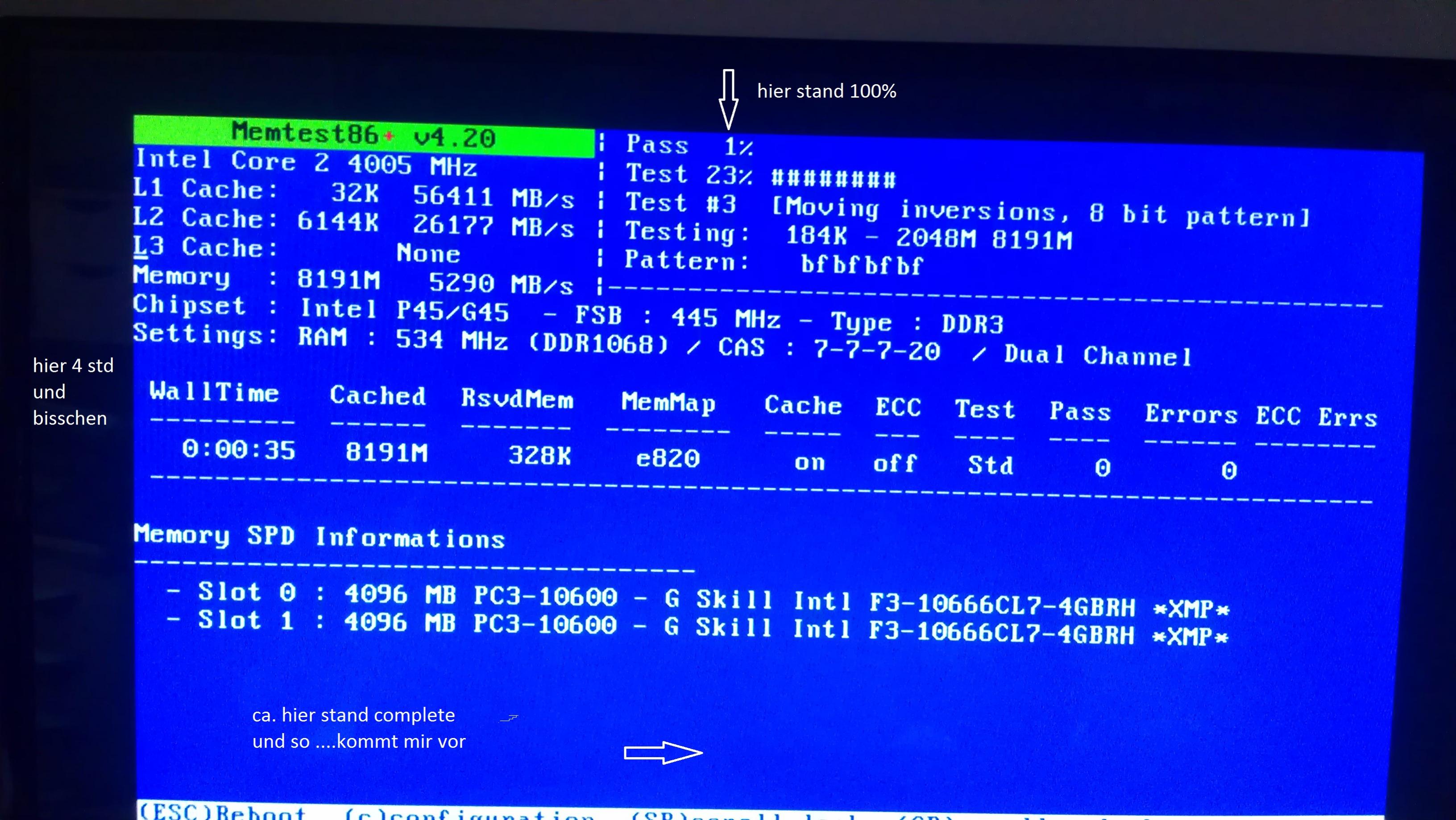 Den Ram testet man am Besten mit Memtest86+, von CD oder Stick starten. Test #5 reicht, 5 Passes.