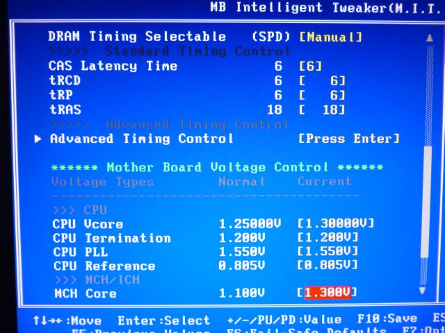 Habe die NB-Spannung um 0,1V erhöht und VTT um 0,05V, beim Hochfahren drehten allerdings alle Lüfter auf, der Bildschirm blieb schwarz und ich musste das Bios resetten.