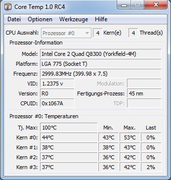 Temperaturmäßig rennt er bei 50 Grad im Idle, bei Belastung sind wir bei höchstens 69 (also nahe an den magischen 71 Grad).