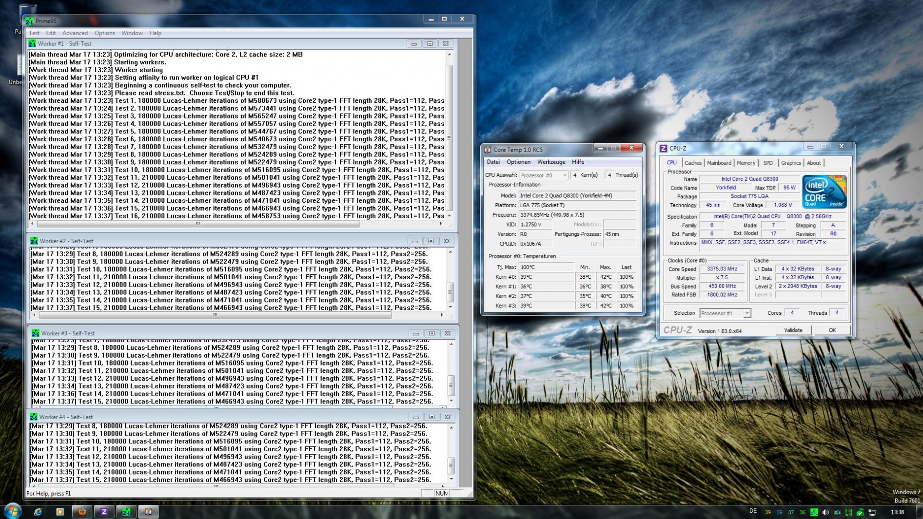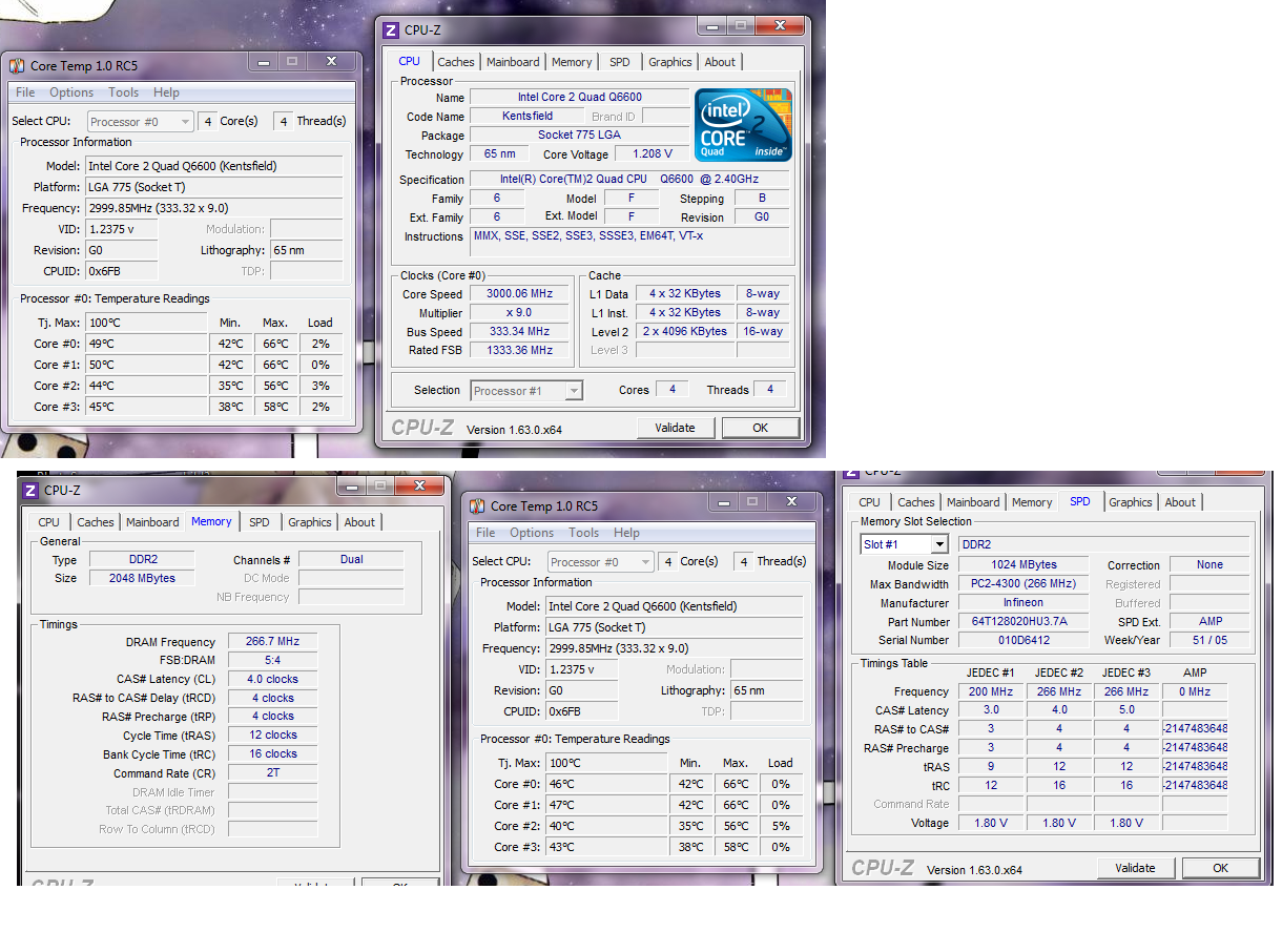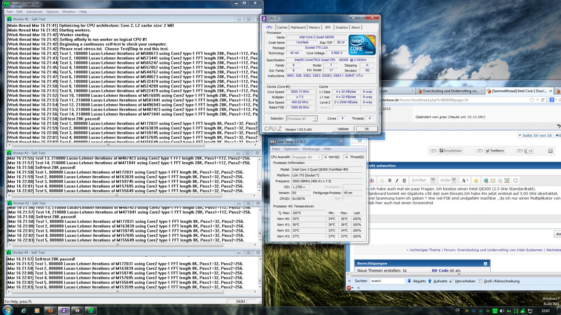 Als Mainboard kommt ein Gigabyte x38 dq6 zum Einsatz.Ich habe ihn jetzt erstmal auf 3.00 GHz übertaktet.