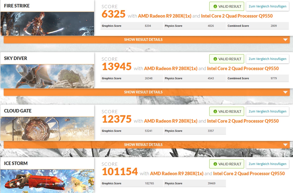 Ich musste mich dann von meinem I5-Rechner verabschieden und bekam nun vor ein paar Wochen einen Q6700. Der war vom Tauschpartner hier auf 3.0GHZ vorgetaktet. Es ist im Tauschrechner eine HD7870 verbaut. Also das Gegenstück zur R9 270x. Jedenfalls war ich gespannt, wie der Q6700 bei 3.2 GHZ gegen meinen I-5 Abschneidet.