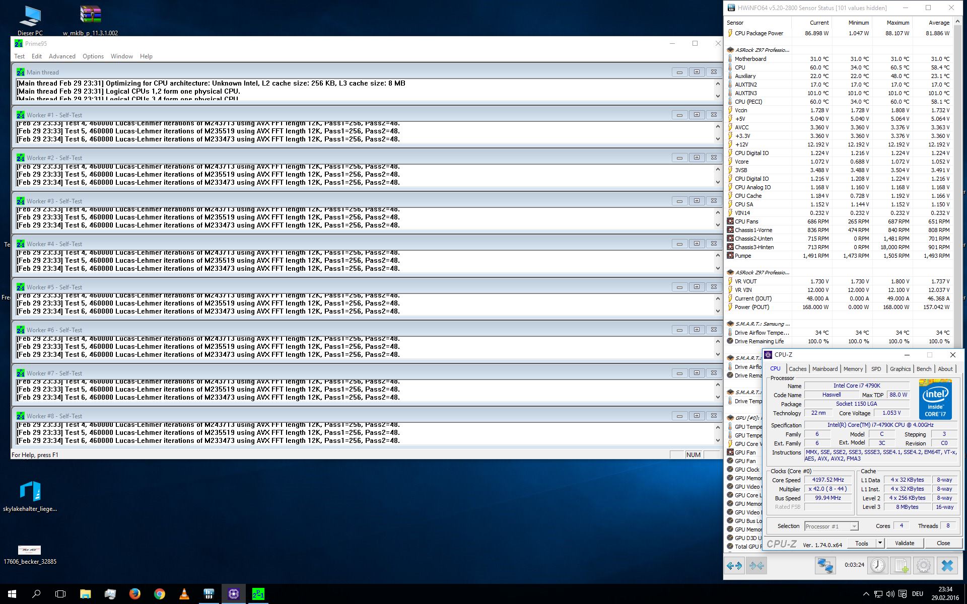 Ich habe nun ca. 45 Minuten Prime laufen lassen und dabei HWMonitor eingeschalten. Mein PC steht in der Signatur. Anbei die Screenshots: